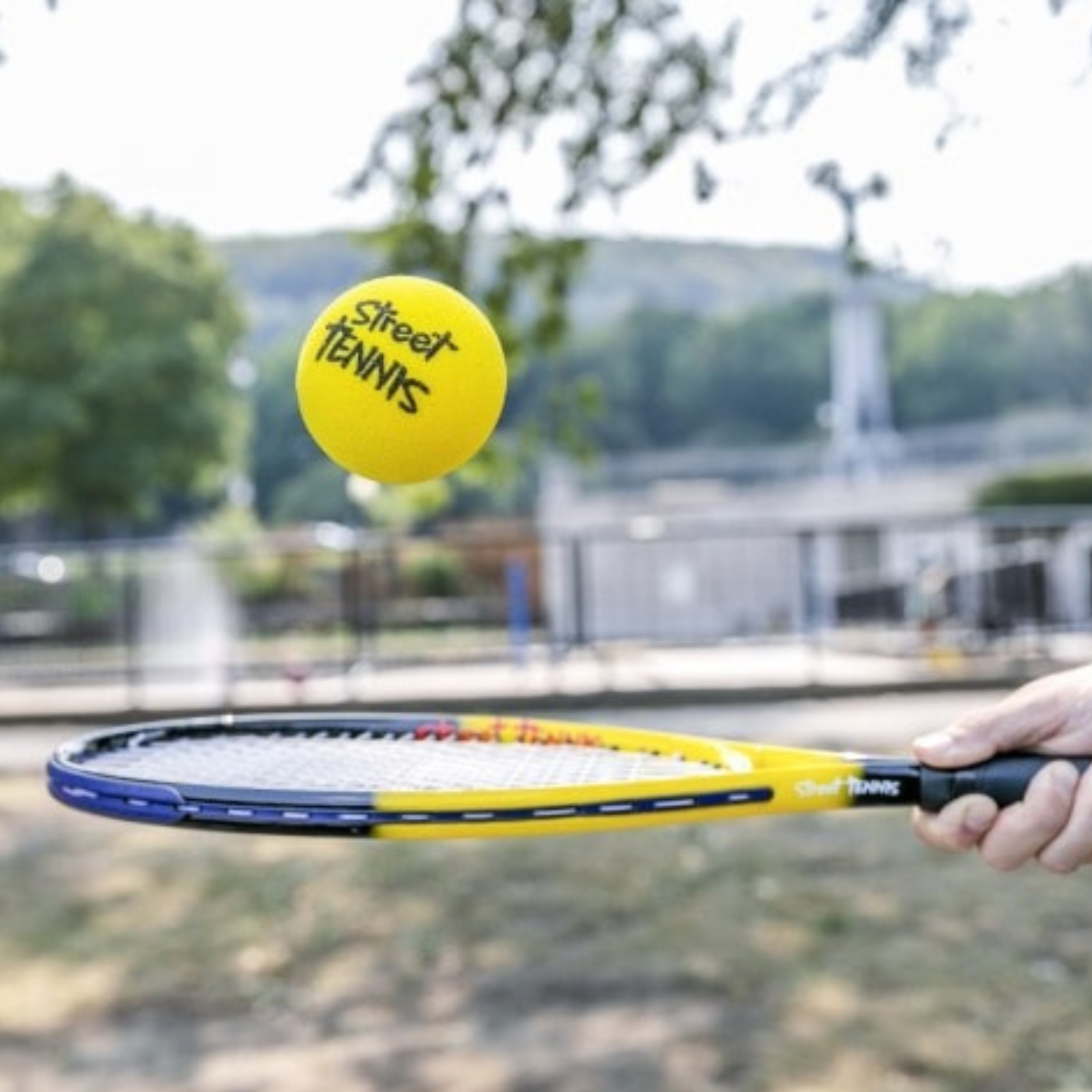 The Street Tennis® Ball and Racket are designed to feel like real tennis while slowing the game down just enough so everyone can play. The dense foam balls are slightly larger and softer than traditional tennis balls, giving you control, confidence, and longer rallies—even in smaller spaces.